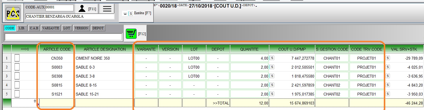 | NAT.COUT.U | NATURE DU COUT UNITAIRE (PMP/SAISIE DIRECTE) |