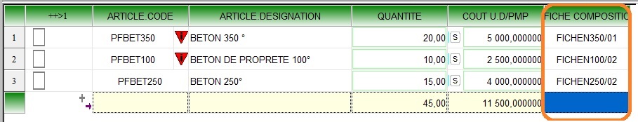UTILISE POUR INDIQUER LA FICHE DE COMPOSITION DANS LES BONS DE PRODUCTION |