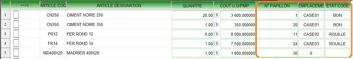 | N° PAPILLON | Utilisé dans les pièces d'inventaire |