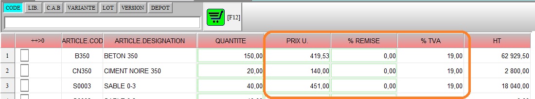 PRIX UNITAIRE DE VENTE/ACHAT |