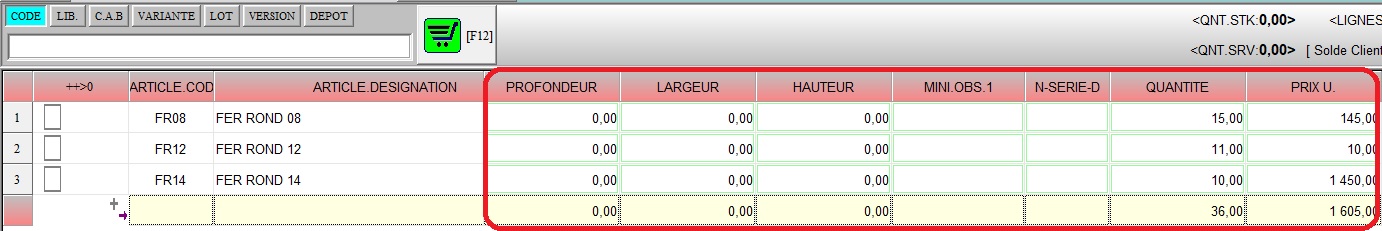 CHAMPS LIGNE DE SAISIE