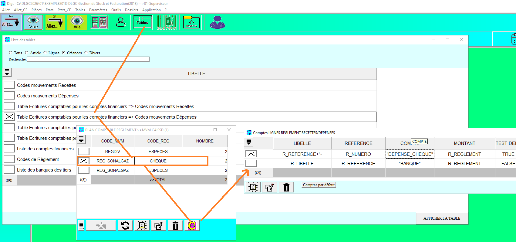 faire par Code de règlement + Code_mvm_recette et Code de règlement